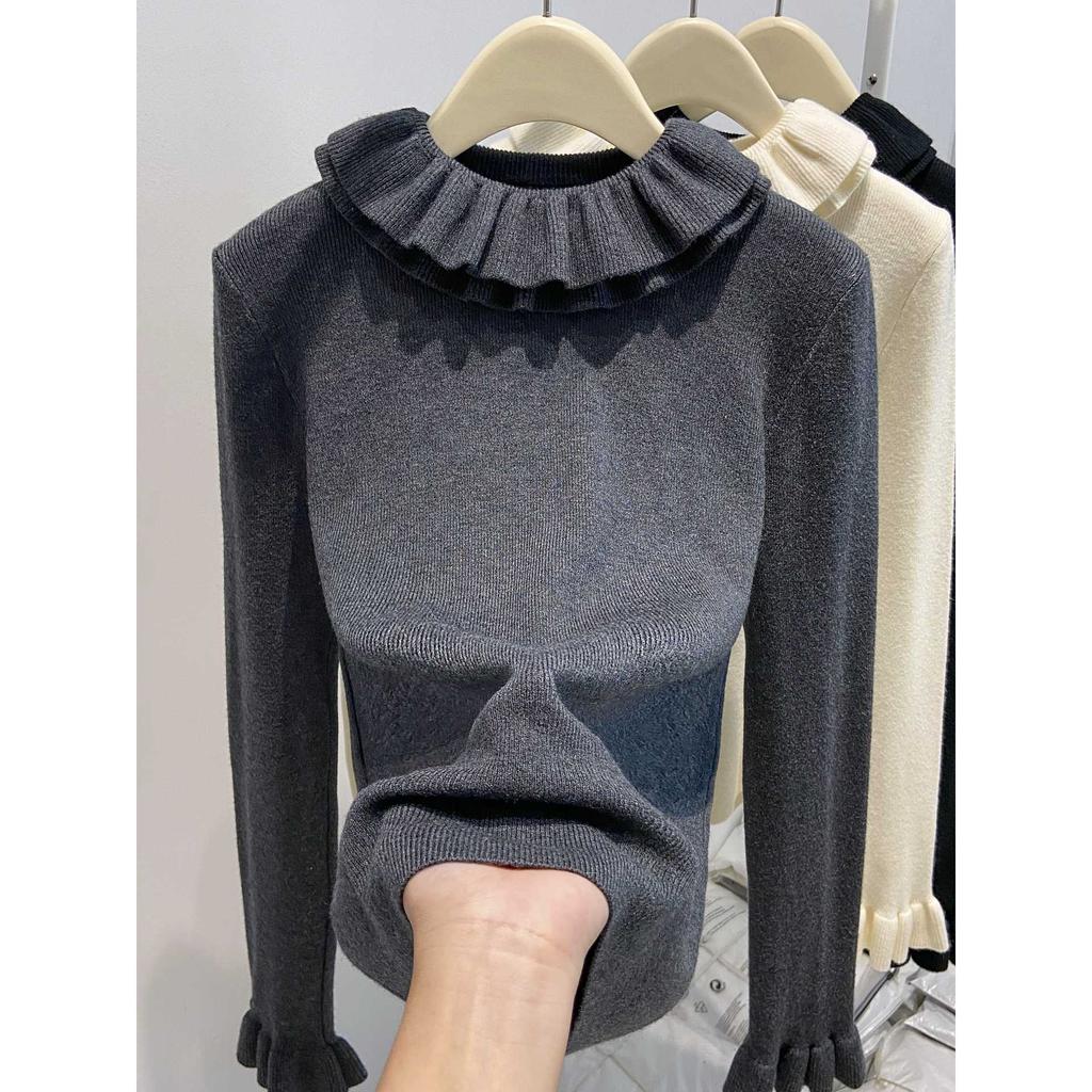 Premium Ruffle Edge Long-sleeved Knitted Sweater for Women's Autumn and Winter New Inner Sweater Bottoming Top
