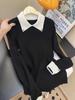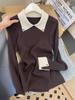Maillard Coffee Lapel Bottom Top Women's Autumn and Winter Contrasting Olo Shirt Slim-fitting Versatile Commuter Knitted Sweater