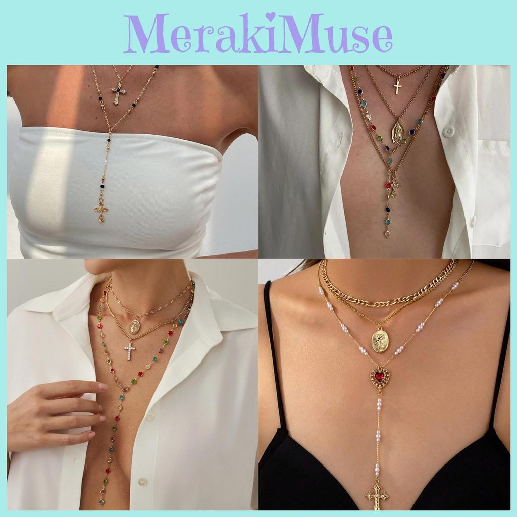 This contemporary layered cross pendant necklace features a zinc alloy construction with an electroplated finish, measuring 48cm. Its multi-layered Y-design showcases a stylish cross motif, ideal for daily fashion or casual outings. Users will appreciate its durability and easy maintenance by wiping with a damp cloth.
