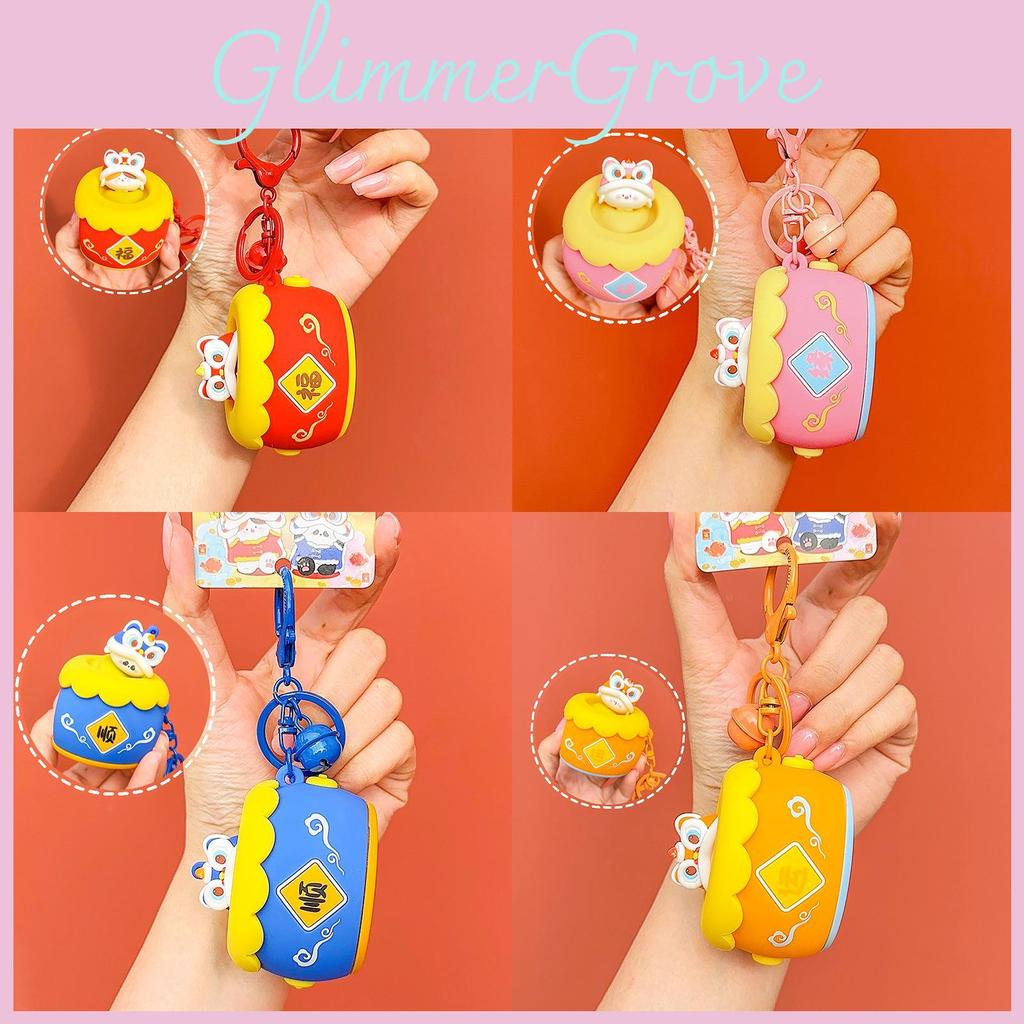 Whimsical Lion Dance Drum Silicone Keychain Playful Cute Accessory For Everyday Use
