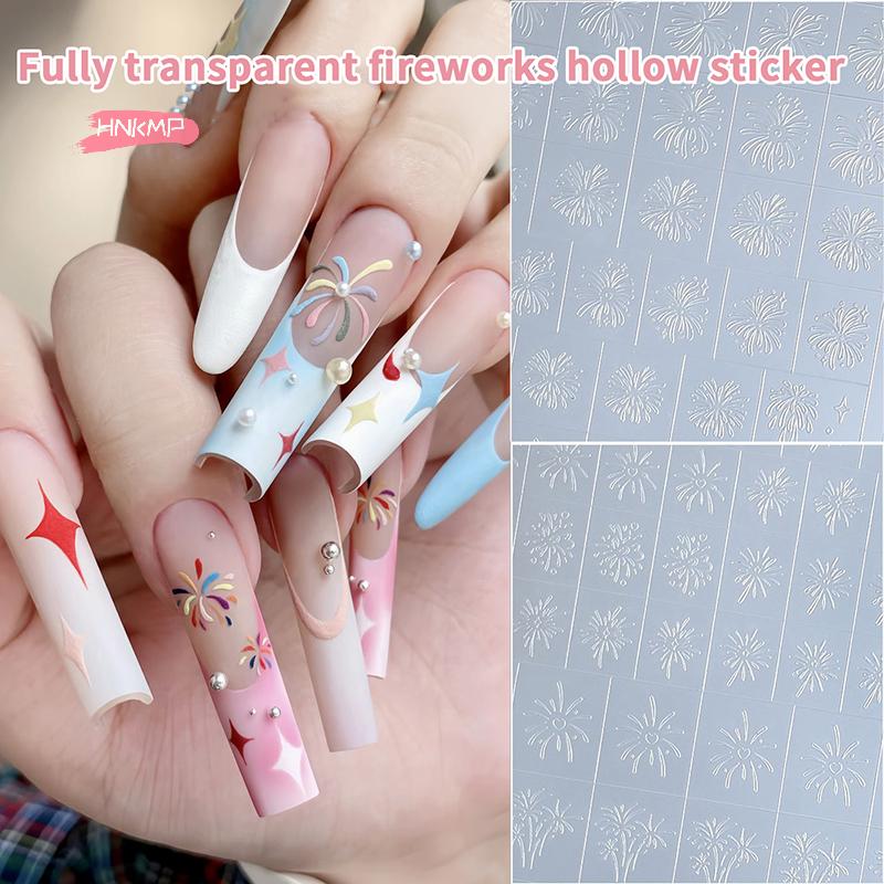 Transparent Fireworks Nail Stickers Hollow Spray Painting Stencil with Christmas Tree & Snowflake Pattern - Adhesive Nail Art