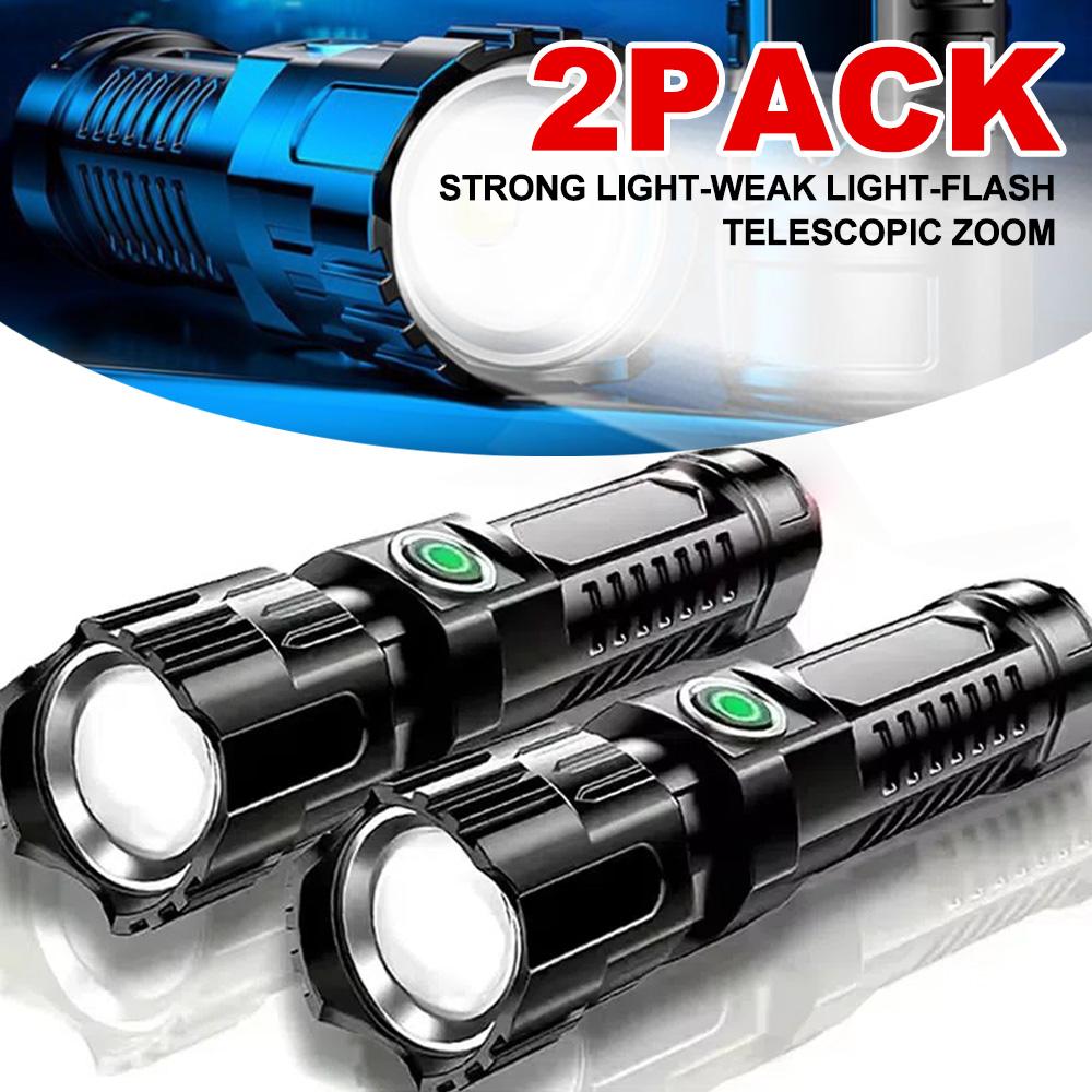 1/2/3Pcs Bright Portable Zoom LED Flashlight Built-in Battery USB-C Rechargeable Emergency Torch Outdoor 3 Lighting Modes