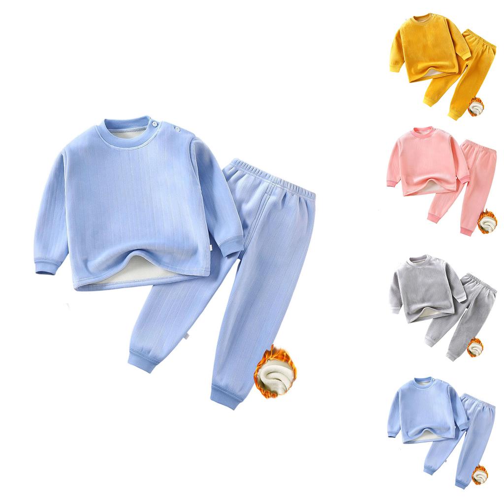 Children's Fleece-Lined Thermal Underwear Set, Seamless Clothes, Suitable for Medium and Large Children