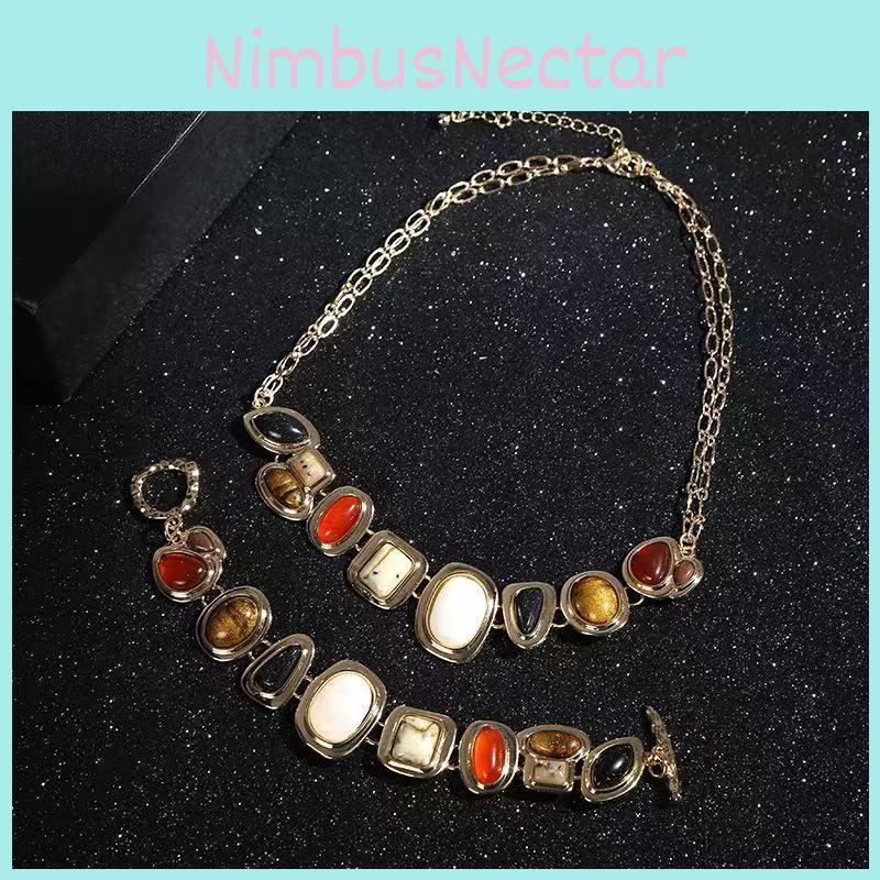 This stylish jewelry set features a multi-layered collar chain and matching bracelet crafted from zinc alloy with electroplating for durability and shine. The geometric design incorporates circular, triangular, and square elements, Ideal for casual or professional wear, it enhances everyday outfits and can be worn during summer seasons. To maintain its appearance, wipe clean with a damp cloth regularly.