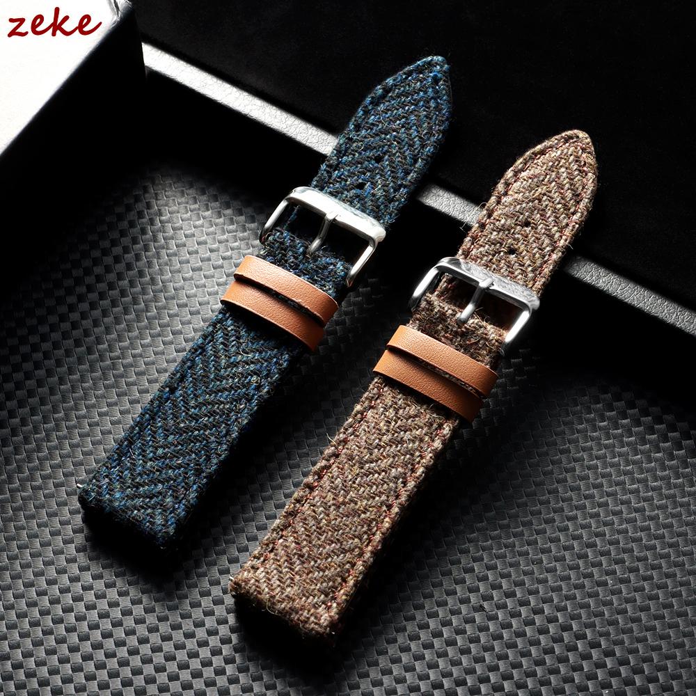 Quick Release Weave Bracelet Vintage Genuine Leather Tweed Nylon Strap 18mm 20mm 22mm for Omega for Seiko Smartwatch Watch Band