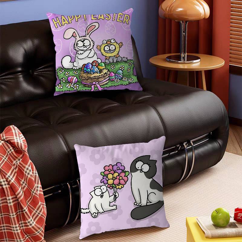 S-Simons Cartoon C-Cat Cushion Cover Inches Farmhouse Decor Home Throw Pillow Covers For Couch Decorations