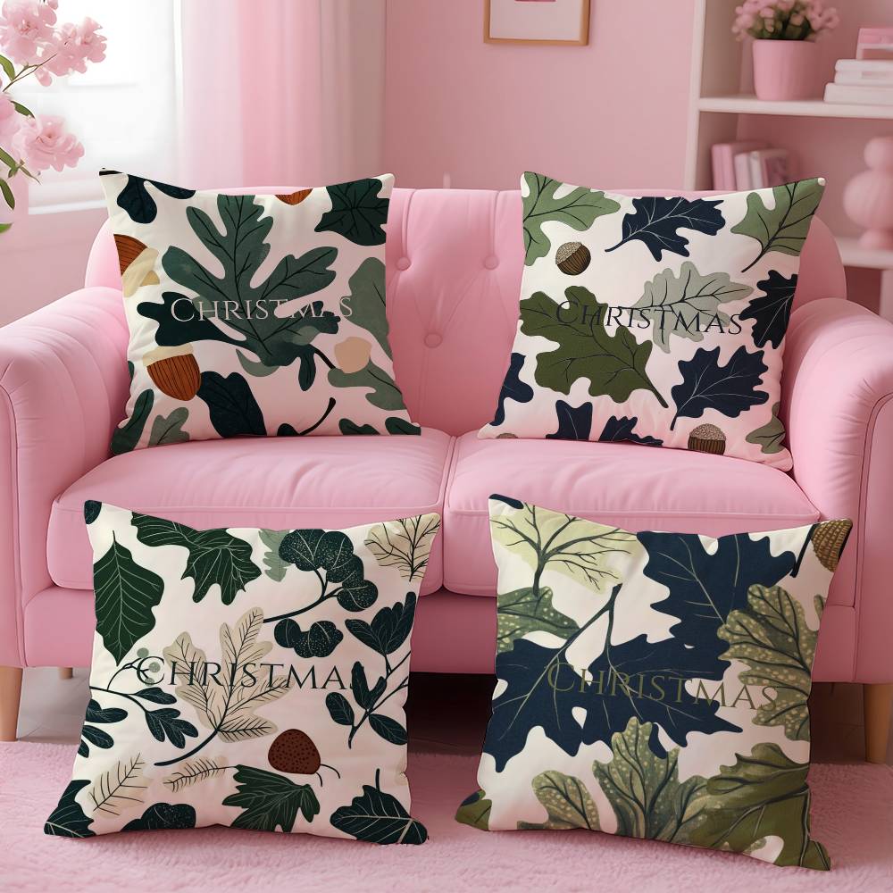 W-Winter Christmas P-Pine Leaf Pillow Case Anti-dustmite Pillow Invisible Zipper Silky Short Plush Sofa Cushion Cover