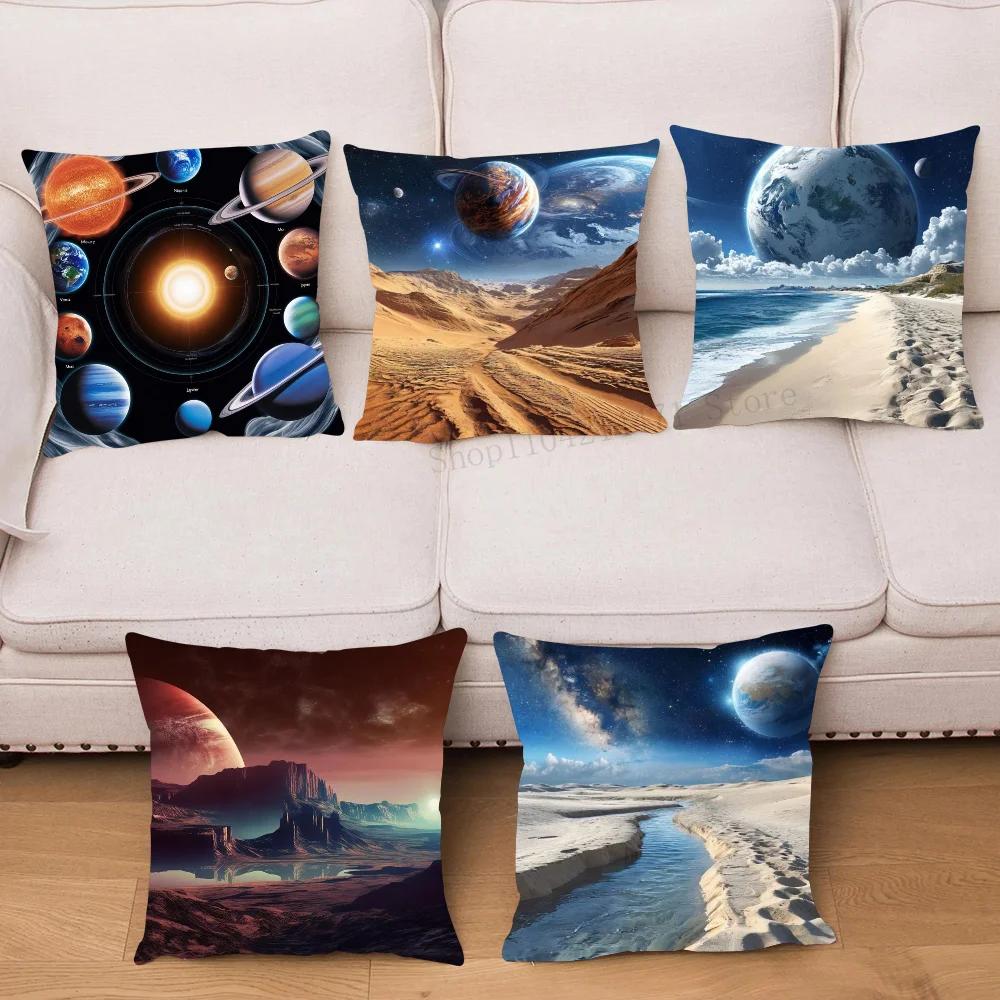 1pc Planets The Solar System Mars Saturn Moon Pillow Case Square Bedroom Sofa Leisure Comfort Cushion Car Living Home Decoration