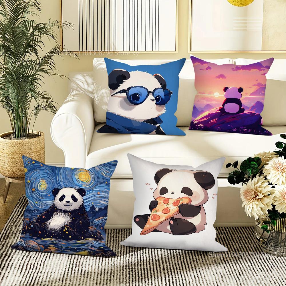 Animated Panda Pillow Case Square Pillow Bedroom Sofa Leisure Comfort Cushion Car Living Room Home Decoration 40X40