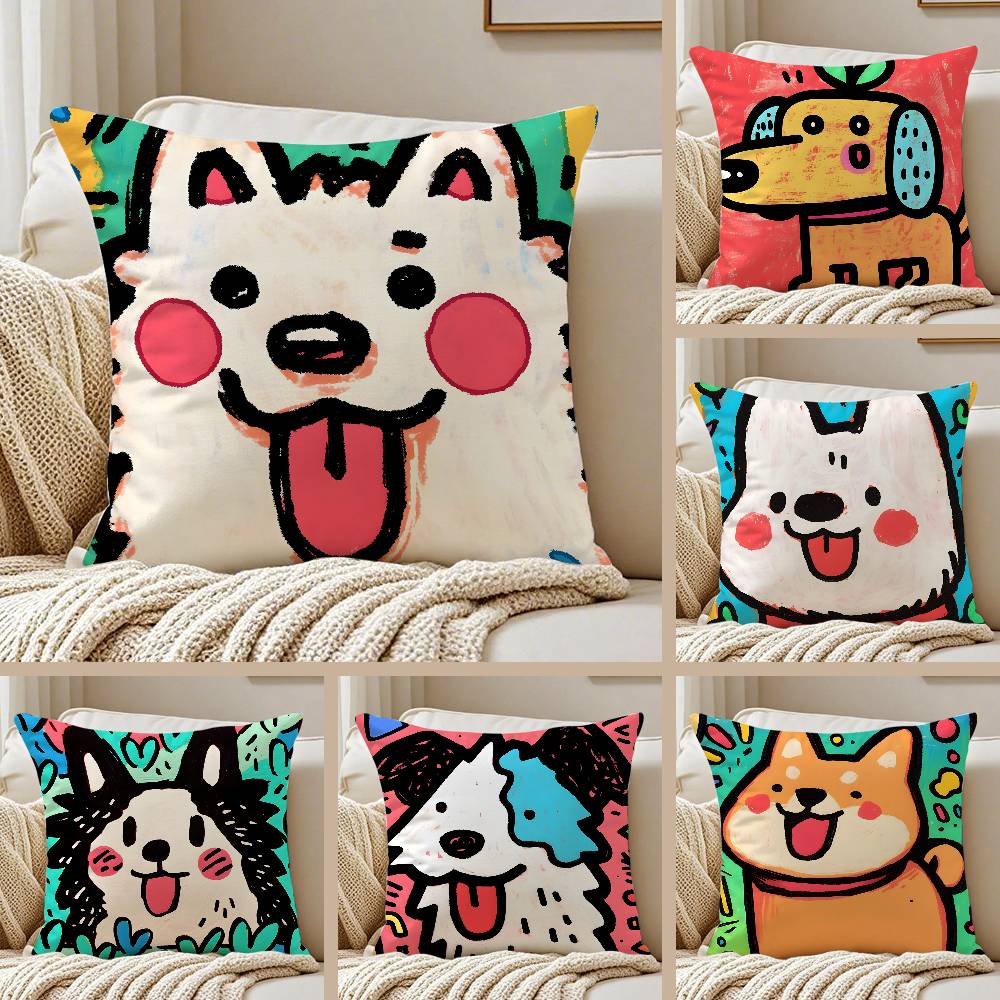 Cute Color Dogs Pillow Case Sofa and Living Room Decorative Cushion Covers Dust-proof and Mite-proof Invisible Zipper