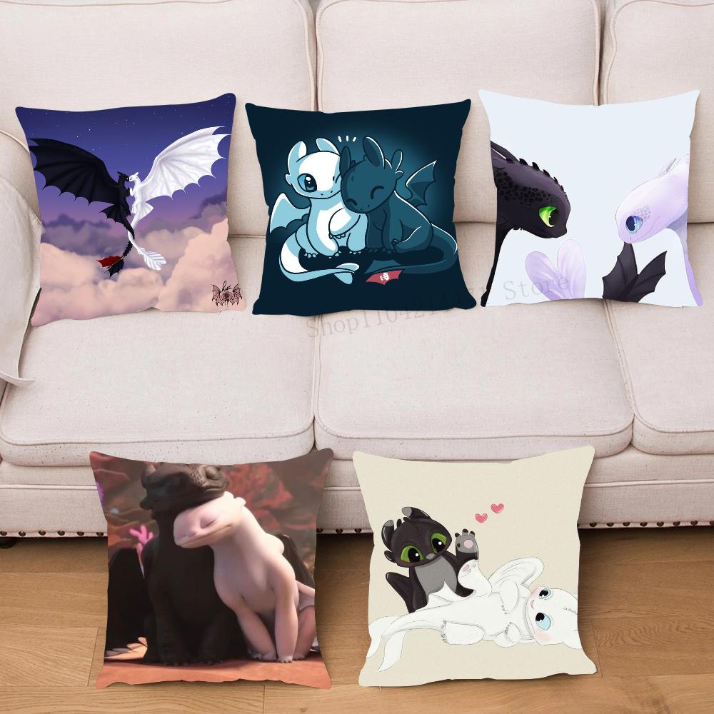 1pc Lovely Couple Toothless Fury Dragon Pillow Case Square Bedroom Sofa Leisure Comfort Cushion Car Living Room Home Decoration