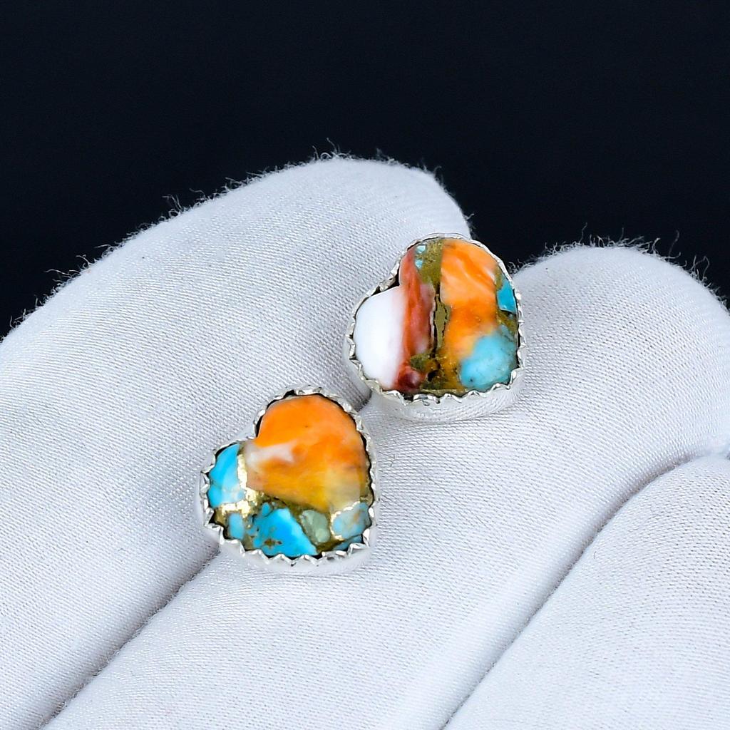 Orange Spiny Oyster Earrings | 925 Sterling Silver Stud Earrings | Handmade Gemstone Love Studs Heart Earrings | Boho Jewelry Wadding Gift