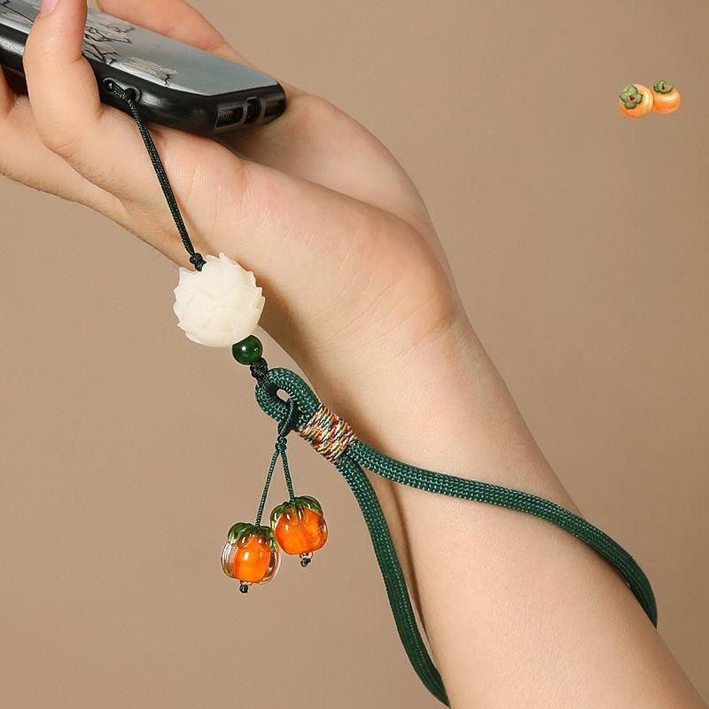 1Pc Persimmon Ruyi Mobile Phone Pendant Short Wrist Lanyard Men's and Women's Glazed Persimmon Pendant Keychain Anti-lost Rope Accessories