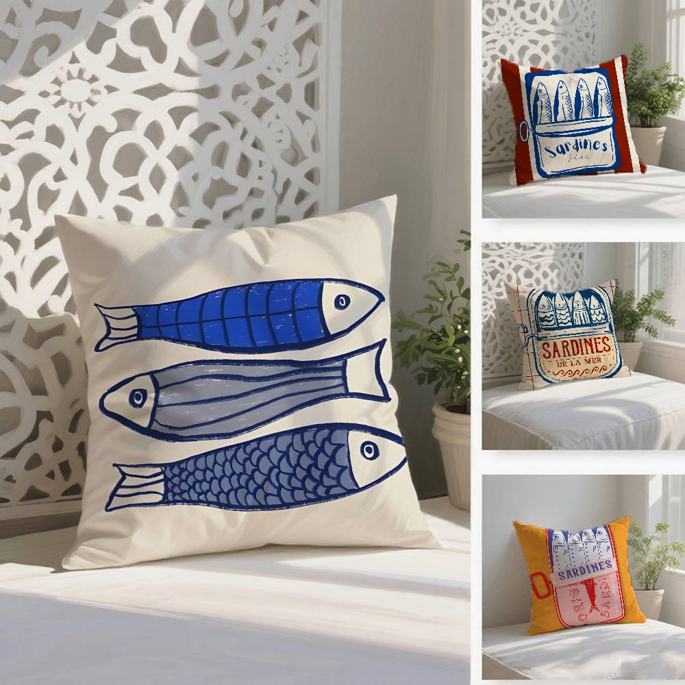 S-Sardines Art Pillow Case Anti-dustmite Pillowcase Invisible Zipper Silky Short Plush Sofa Cushion Cover