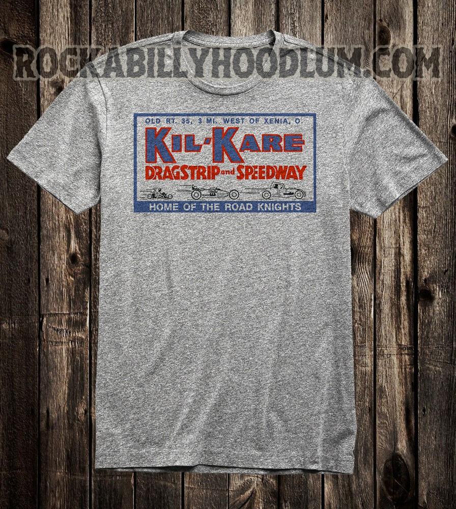Retro Hot Rod Tee T Shirt Vtg Art Drag Race Racing Kil-Kare Raceway Ohio