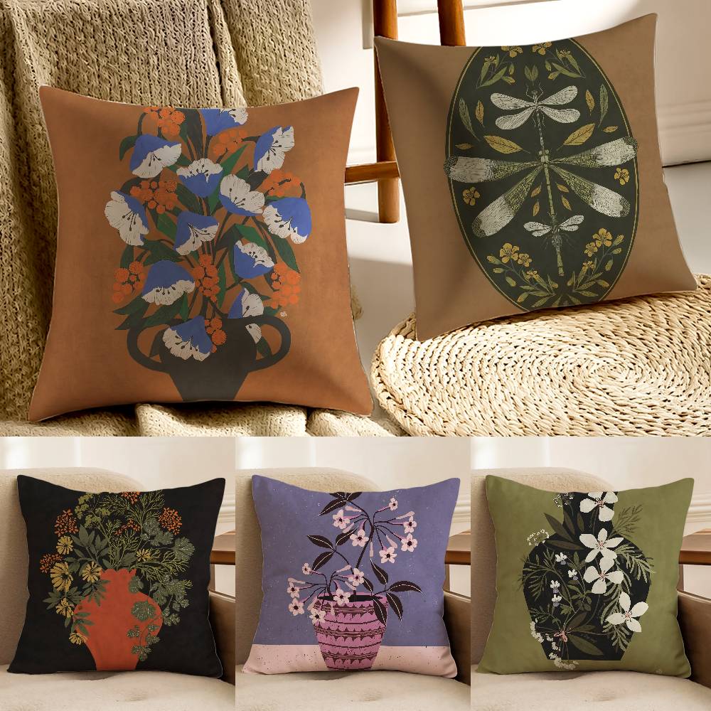 Vintage Vase Print Pillow Case Anti-dustmite Invisible Zipper Sofa Bed