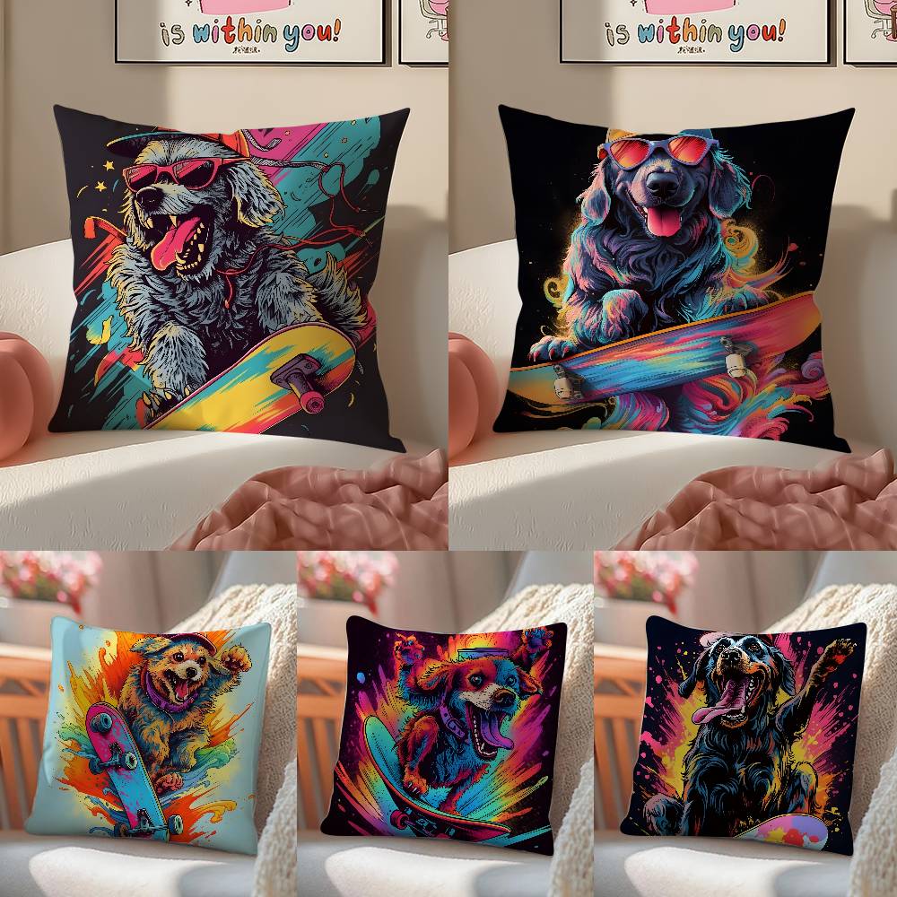 Retro Style Trendy Artistic Dog Pattern Pillow Case Comfort Sofa Bed Silky Elegant Invisible Zipper Decorative Cushion Cover