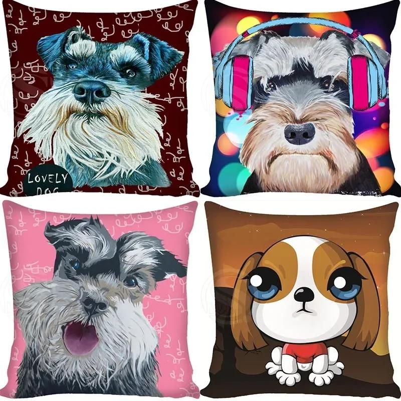 Cartoon Funny Dog Schnauzer Fashion Style Square Pillowcase Zipper