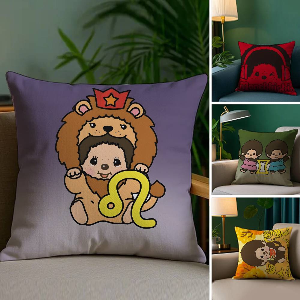 Cute Cartoon M-Monchhichis-MT Pillow Case Printed Brushed Fleece Pillow Baby Skin-Touch Eco-Friendly Dye-Sublimat