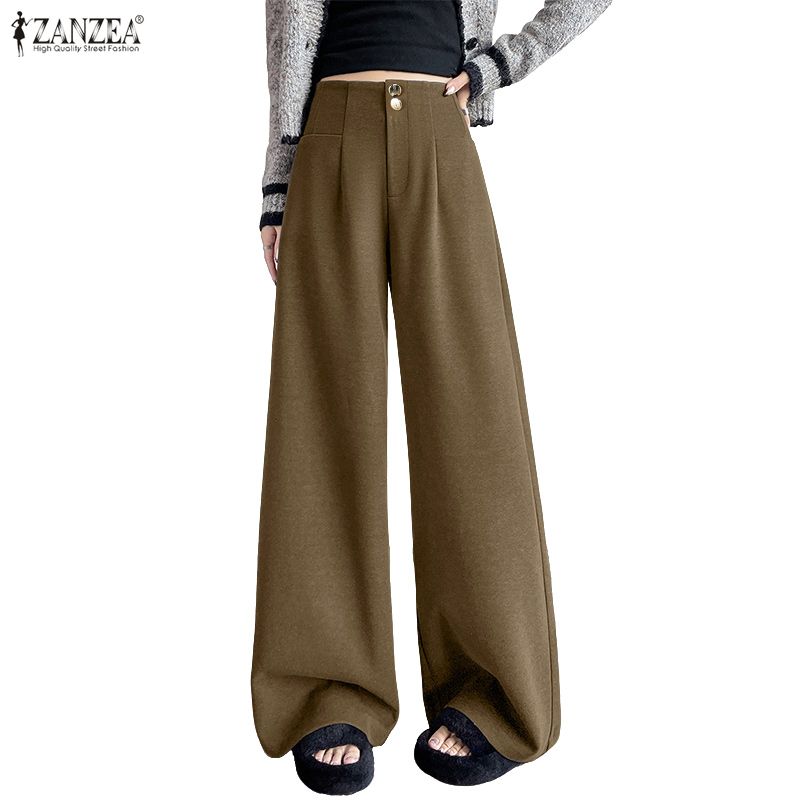 ZANZEA Women Casual Solid Color Loose Wide Leg Pants