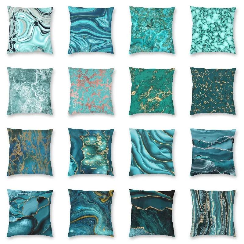Home Decor Pillowcase Abstract Marble Pattern Cushion Cover Turquoise Aqua Blue Swirl Car Fashion 45x45cm