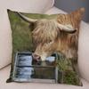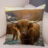 Scotland Kyloe Pillow Case Decor Wild Cow Colorful Animal Print Pillowcase Soft Short Plush Cushion Cover for Home Sofa 45x45cm