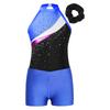 Girls Sleeveless Rhinestones Decorated Patchwork Leotard Hair Band V Front Waistband Shorts Gymnastics Training Dance Set