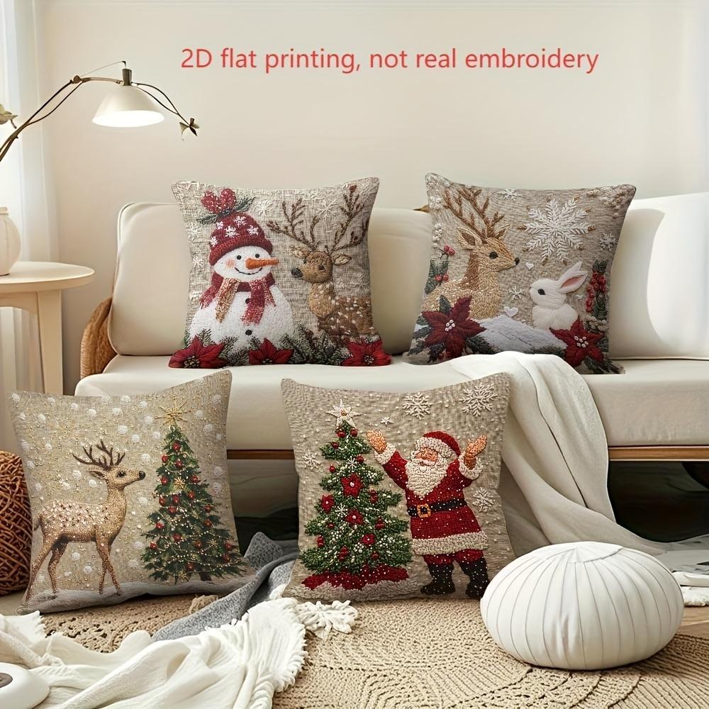 Christmas Pillowcase: Snowman, Reindeer, Bunny and Santa Claus Pattern New Year Home Decoration 2d Flat Printing