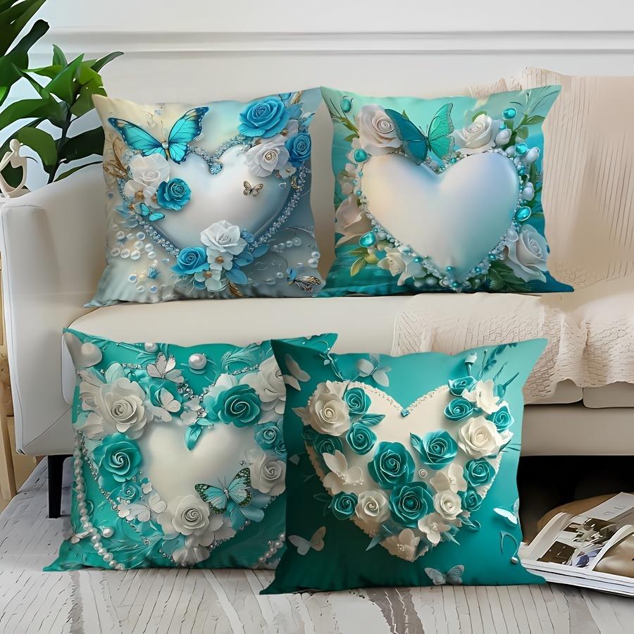 Valentine's Day Navy Blue Heart Shaped Butterfly Floral Pillowcase Suitable for Sofa Car Bedroom Decorative Cushion Cover