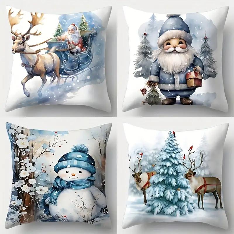 1pc Christmas Pillow Cover.reindeer,snowman,and Santa Claus Patterns Soft Throw Pillow Cover,zipper Closure for Sofa Decoration