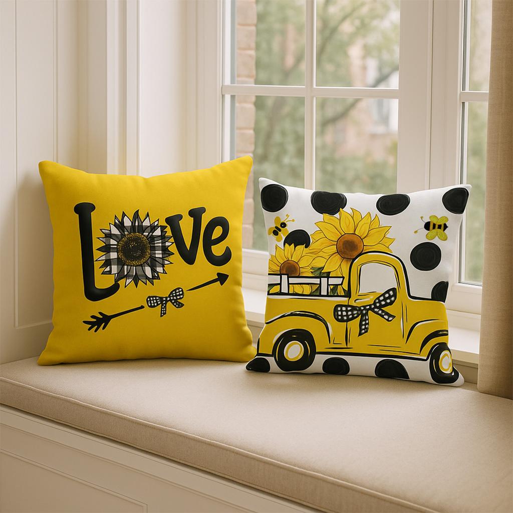 1pc Summer Honey and Bee Pattern Pillow Cover, Machine Washable Zipper Closure - No Core, 18x18 Inches