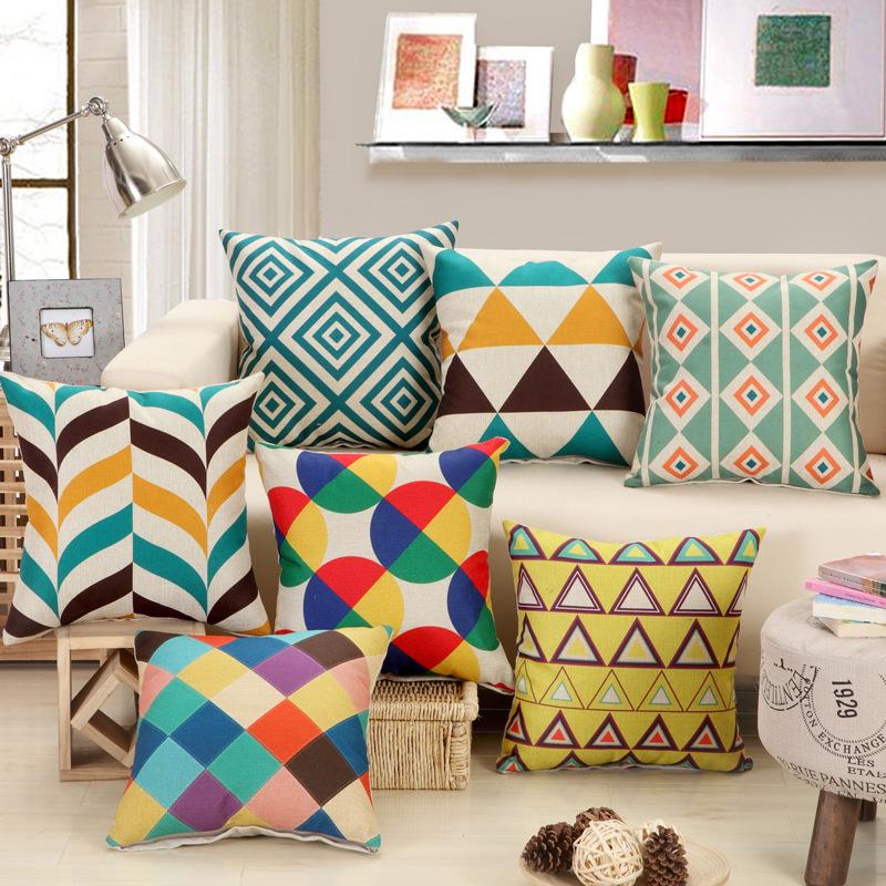Geometric Floral Cushion Flowers Yellow Geometry Decorative Pillows Linen Pillowcas Home Decoration for Sofa Countryside