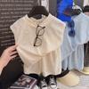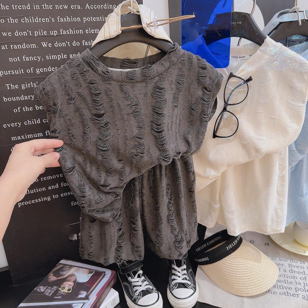 Boys' Summer Vintage Lightweight Loose Set Sleeveless Distressed Top + Shorts Breathable Outerwear Two-Piece Set