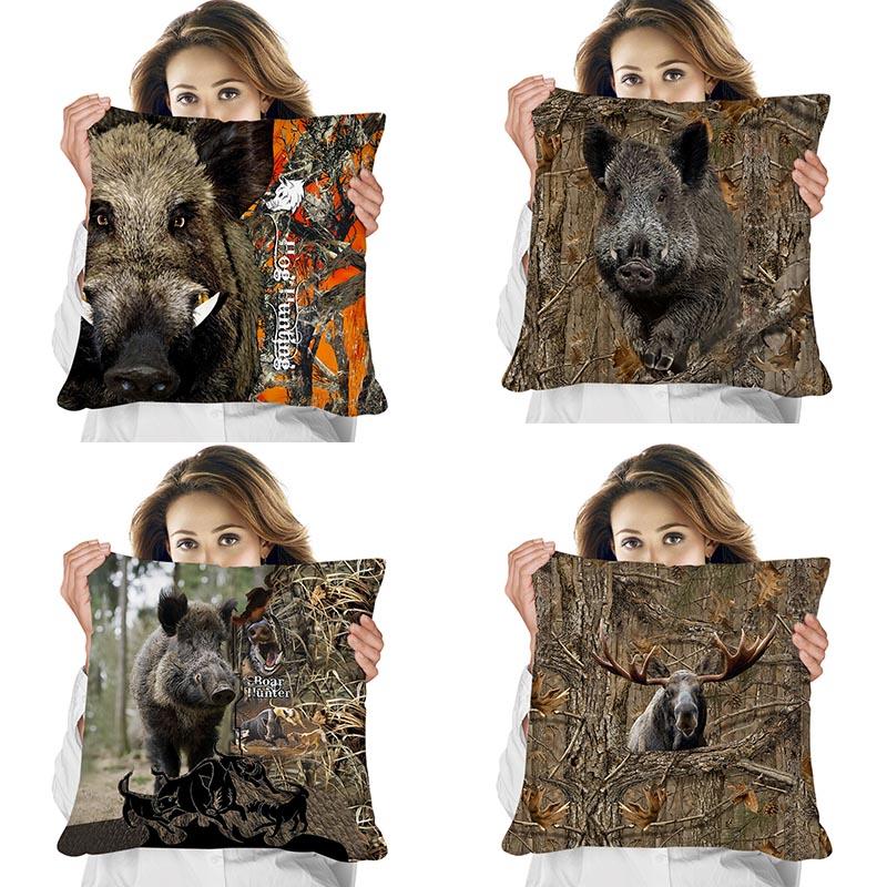 Animal Pillowcase Beautiful Wild Boar Hunting Reversible Printed Cushion Cover Home Fun Throw Pillow