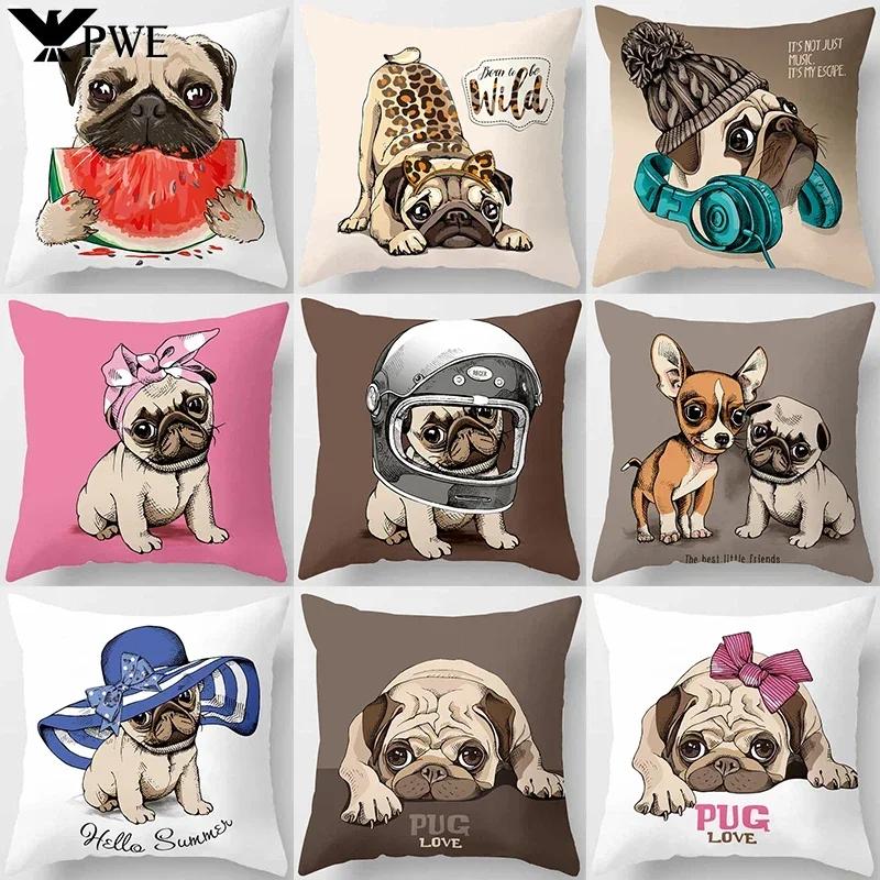 Cute Pug Bulldog Sofa Decorative Cushion Covers Pillowcase For Living Room Personalized Polyester Pillow Case 45*45 Home Decor