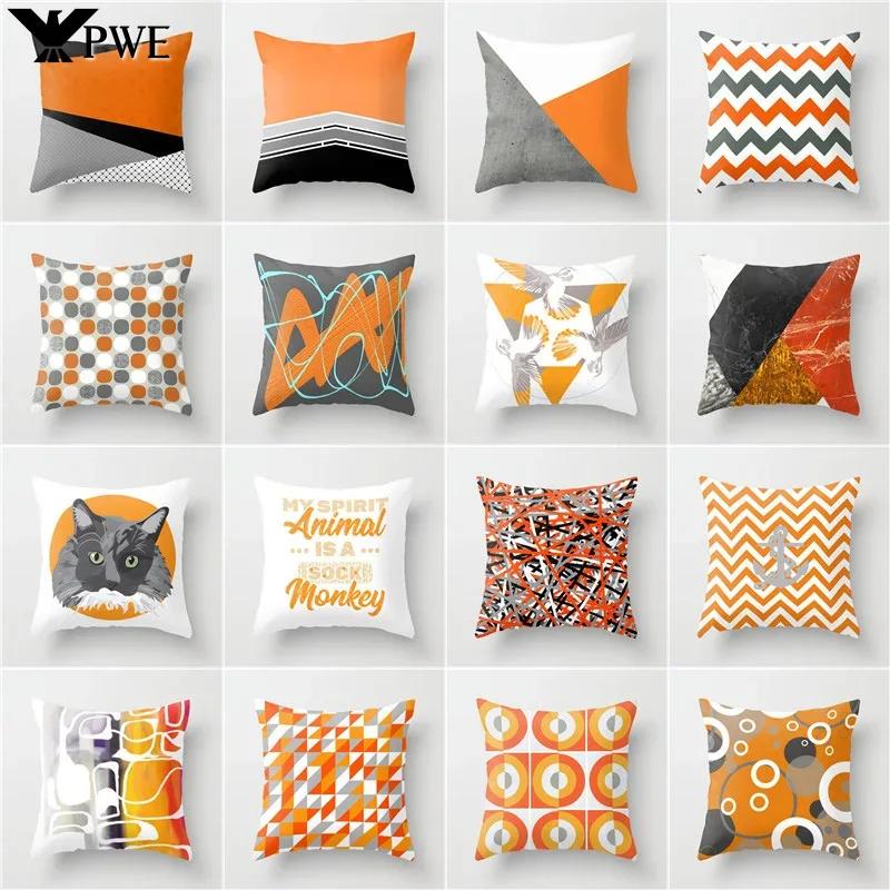 Car Sofa Cushion Cover Orange Geometric Pattern Print Square Pillowcase Home Decor