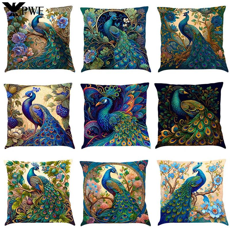 Nordic Style Oil Painting Peacock Cushion Cover 45x45cm Linen Sofa Throw Pillow Cover Home Decorative Pillowcase