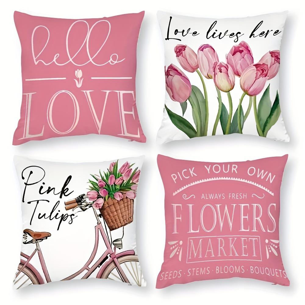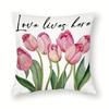 Pink Spring Tulip Print Home Decor Pillowcase Bedroom Living Room Sofa Decoration Polyester Cushion Cover with Zipper