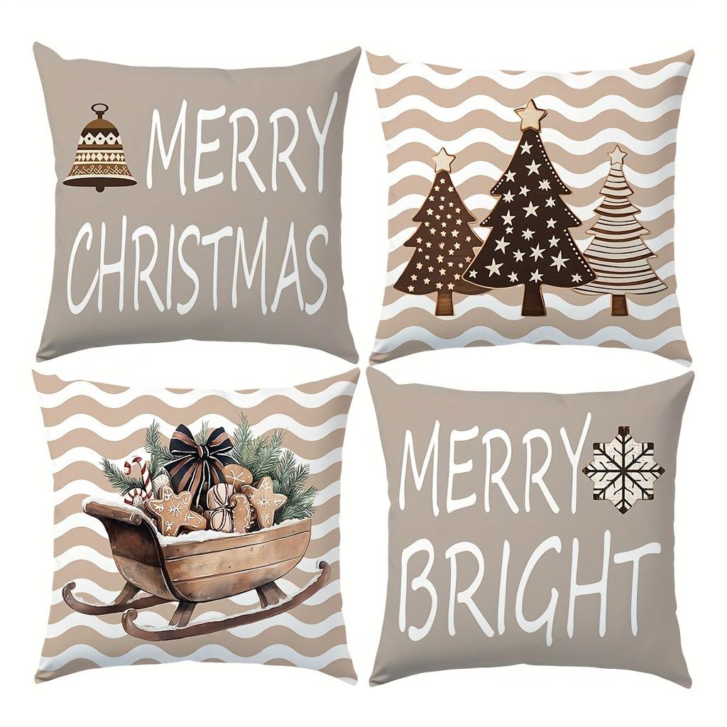 1pc/4pcs Festive Merry Christmas & Merry Bright Pillow Covers with Unique Designs Sofa Room Decoration Holiday Home Decoration
