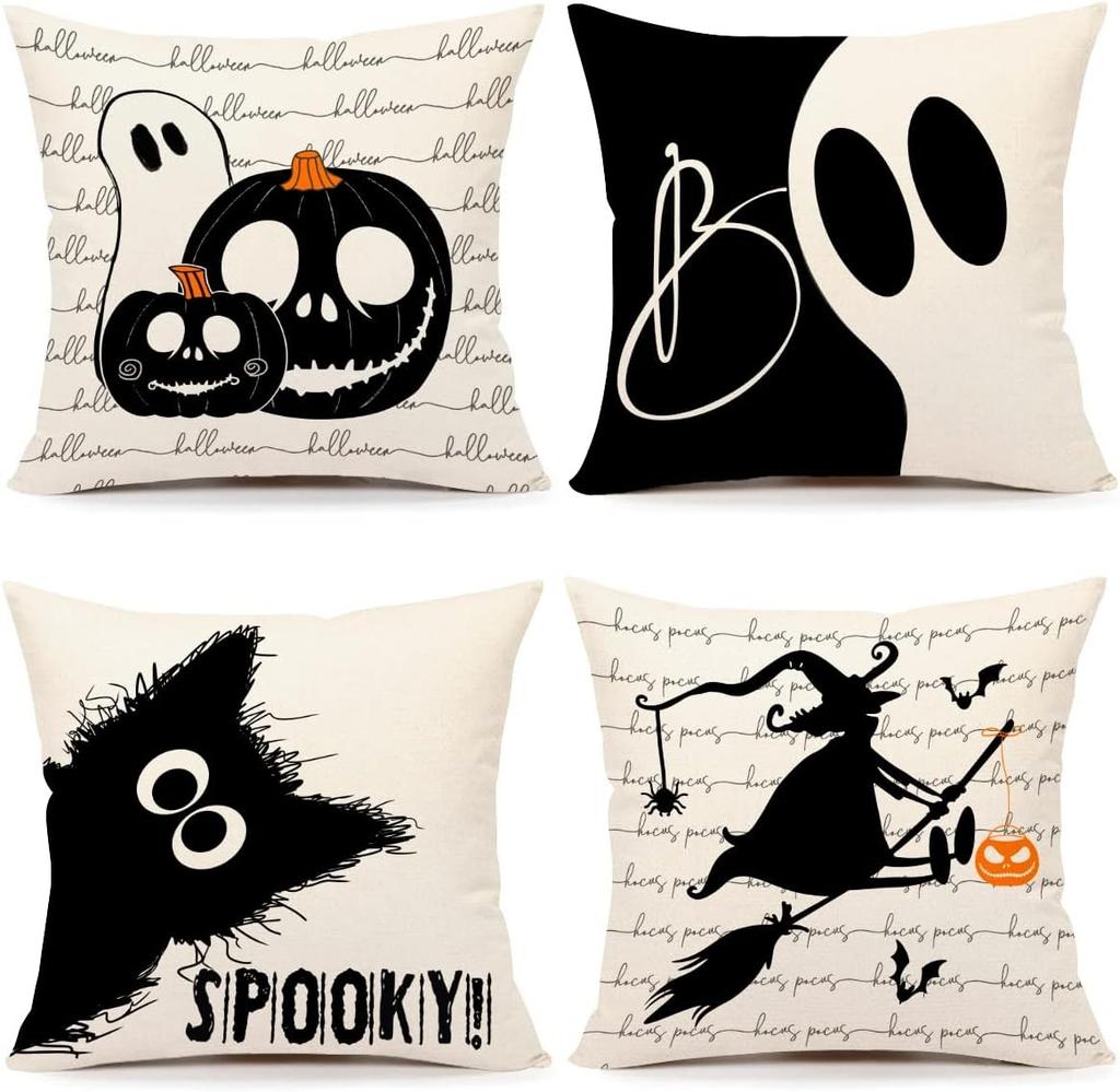 Halloween Themed Pillowcases: Spooky Pumpkins, Ghosts, and Witches! Sofa Cushion Cover, Holiday Party Decoration, Gift