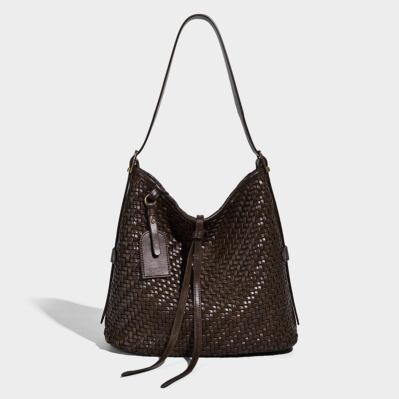 High-end Vintage Woven Bucket Bag for Women 2025 Autumn Winter New Fashion Large Capacity Casual Shoulder Bag for Women