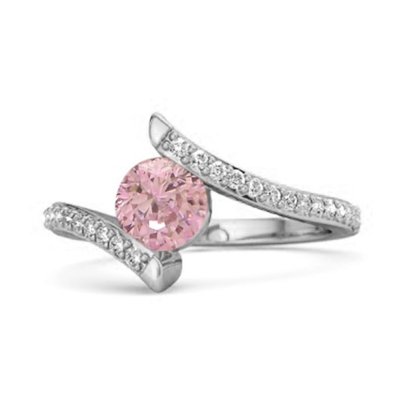 925 silver ring with 0.75 Ct Pink Topaz in a pavé bypass design. A soft pink statement ring for romantic and modern elegance.