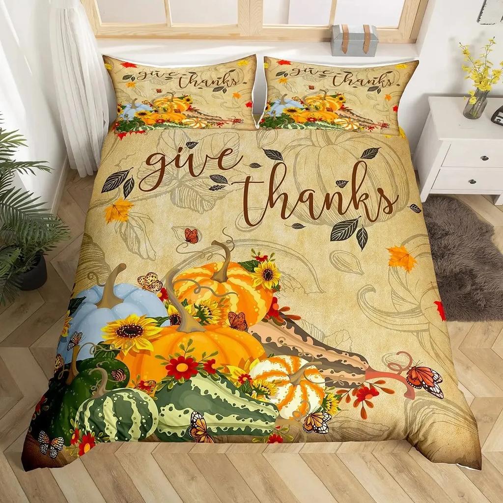 Thanksgiving Pumpkin Duvet Cover Set Maple Leaves Bedding Sets Truck Sunflower Comforter Cover Autumn Harvest Farmhouse Decor