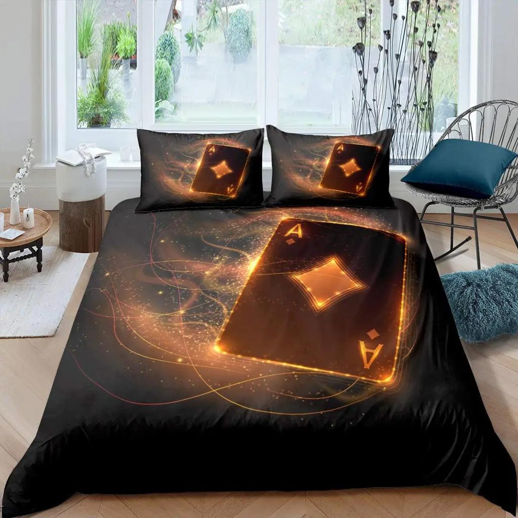 Poker King Queen Duvet Cover Modern Card Game Bedding Set Gamer Playing Comforter Cover Gambling Athletics Polyester Quilt Cover