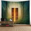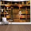 Bookshelf Tapestry, Digital Illustration Of Abstract Design Library In Forest Academic Themed Picture, Wall Hanging Wall Decor