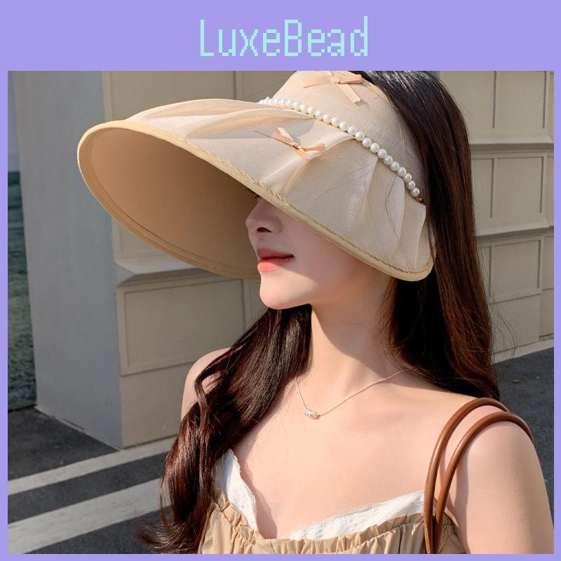 Summer Sun Protection Hat With Large Brim And Pearl Bow For Womens Outdoor Sunshade