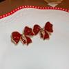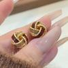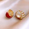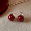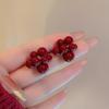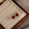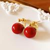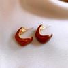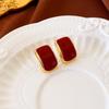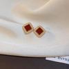 Silver Needle Red Geometric Stud Earrings - Korean Style Fashion Design for Women, High-End Exquisite Ear Jewelry