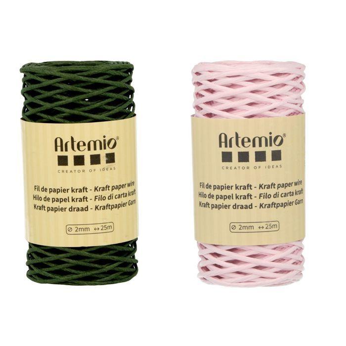 2 bobines fil kraft vert bouteille/rose 2mm x 25 m