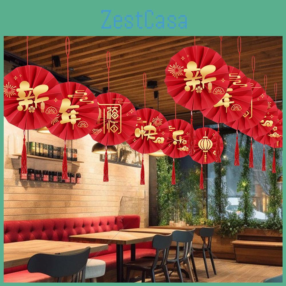 Festive New Year Paper Fan Flower Decorative Hanging Ornament For Spring Festival Celebrations