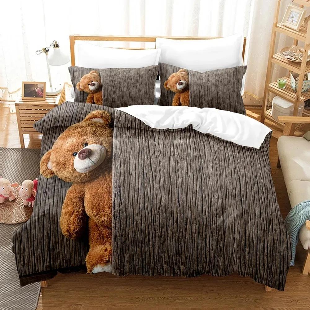 3D Print Teddy Bear Bedding Set Duvet Cover Bed Set Quilt Cover Pillowcase Comforter King Queen Size Boys Adult Bedding Set
